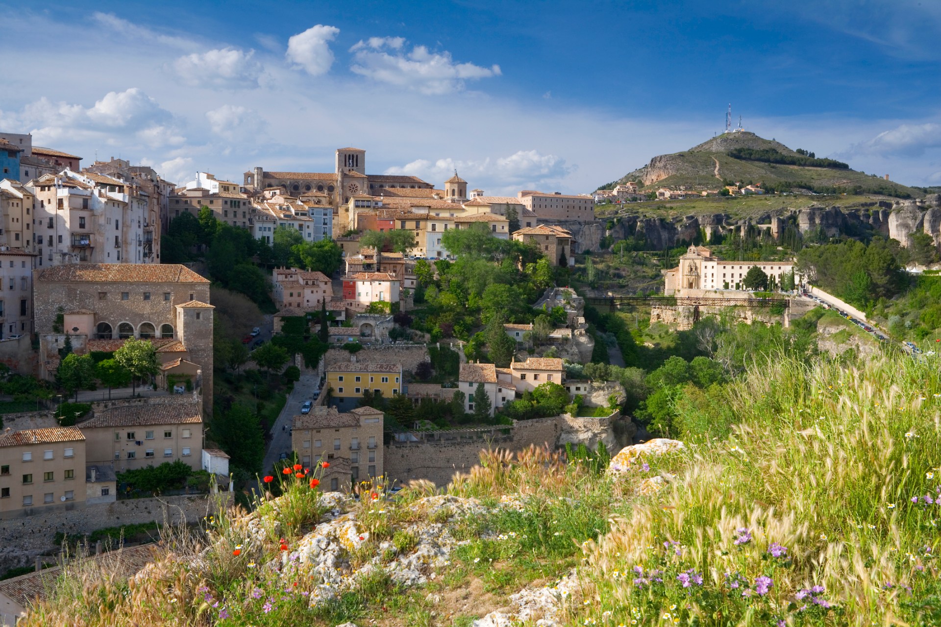 The town's most recognizable landmarks, the Casas Colgadas, are ingeniously constructed within the cliff face and dramatically hang over the Huécar River canyon.