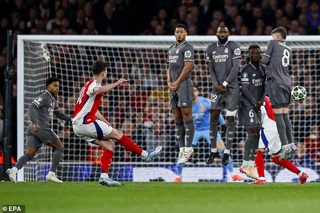 The Gunners will carry a significant edge into their match at the Bernabeu next Wednesday following this result. Declan Rice Free kicks and a Mikel Merino goal shocked the European champions in the first leg at the Emirates.