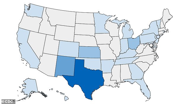 The largest numbers of cases have been recorded in Texas and New Mexico, with Kansas and Ohio experiencing an increasing number of reports as well.